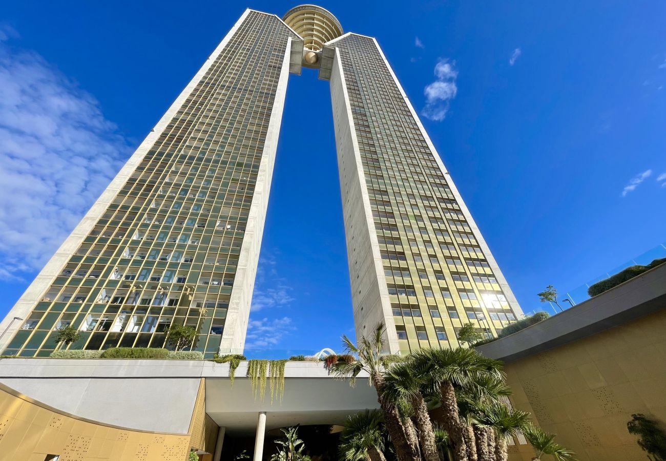 El apartamento en Benidorm posee 2 dormitorio(s) y capacidad para 5 personas. Alojamiento de 85 m² amueblado con gusto y muy luminoso, con vistas al mar. Se encuentra a 0 m de la playa de roca, 2 m de la ciudad "Casco Antiguo Benidorm", 100 m del restaurante, 700 m de la playa de arena "Playa de Poniente", 1 km del supermercado "Zona Comercial La Marina", 3 km del campo de Golf "VILLAITANA", 3 km de la estación de autobuses "Benidorm", 3 km del parque de atracciones "Terra Mítica", 5 km del parque acuático "Aqualand", 65 km del aeropuerto "Alicante", 65 km de la estación de tren "Alicante" y está ubicado en una zona ideal para familias y junto al mar.Dispone de ascensor, lavadora, plancha, acceso internet (wifi), calefacción bomba de calor, aire acondicionado en todo el alojamiento, piscina comunitaria, piscina climatizada comunitaria, parking cubierto en mismo edificio, 1 Televisor.La cocina americana, de vitrocerámica, está equipada con nevera, microondas, congelador, vajilla/cubertería, utensilios/cocina, cafetera, tostadora y hervidor de agua.