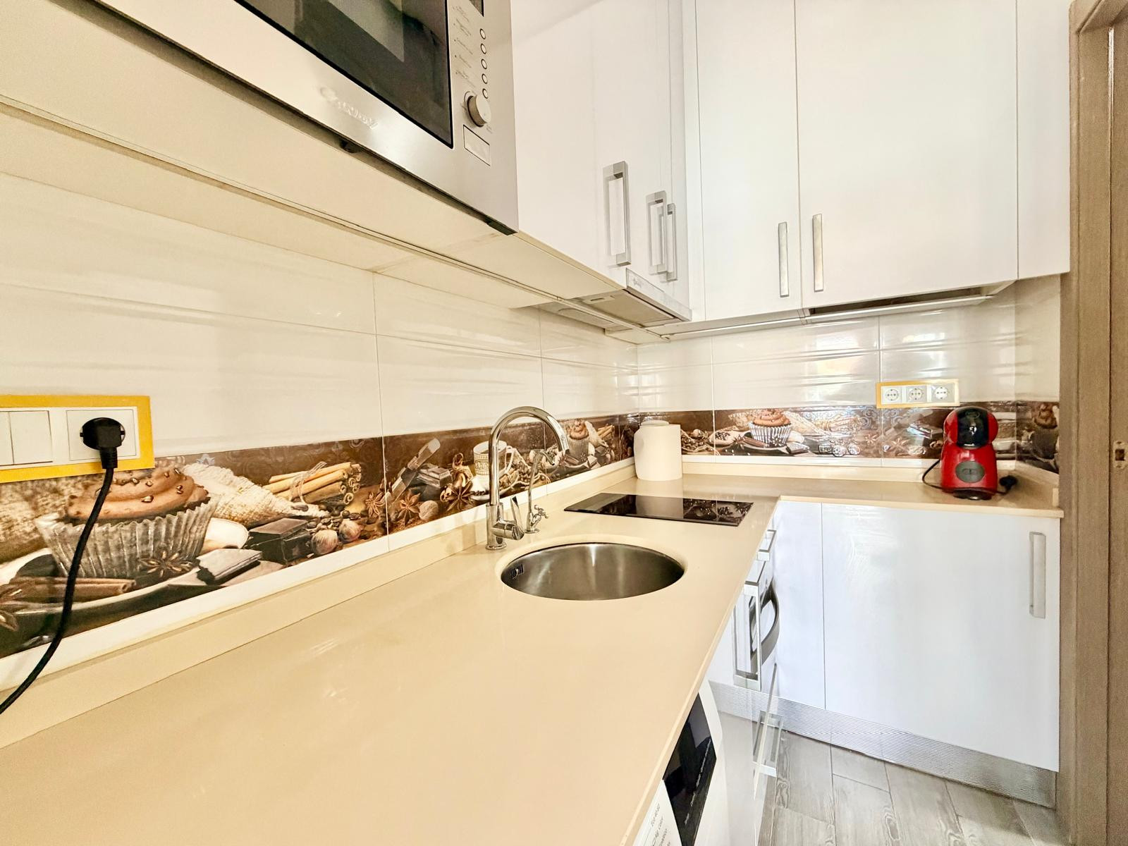 Dispone de 10 m² de terraza, lavadora, plancha, secador, calefacción bomba de calor, aire acondicionado en el salón y algunos dormitorios, piscina comunitaria, parking aire libre en mismo edificio, 1 Televisor.