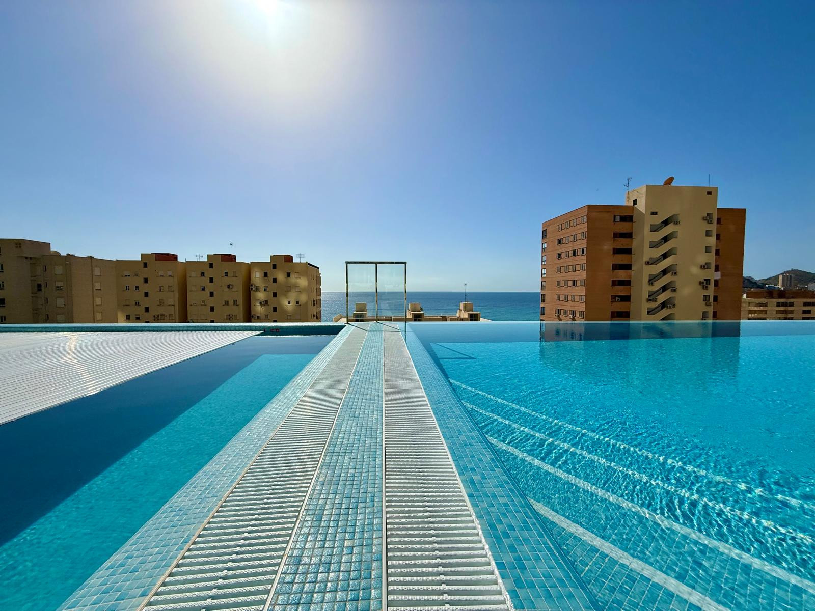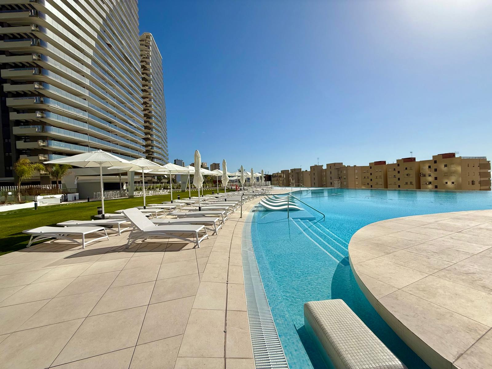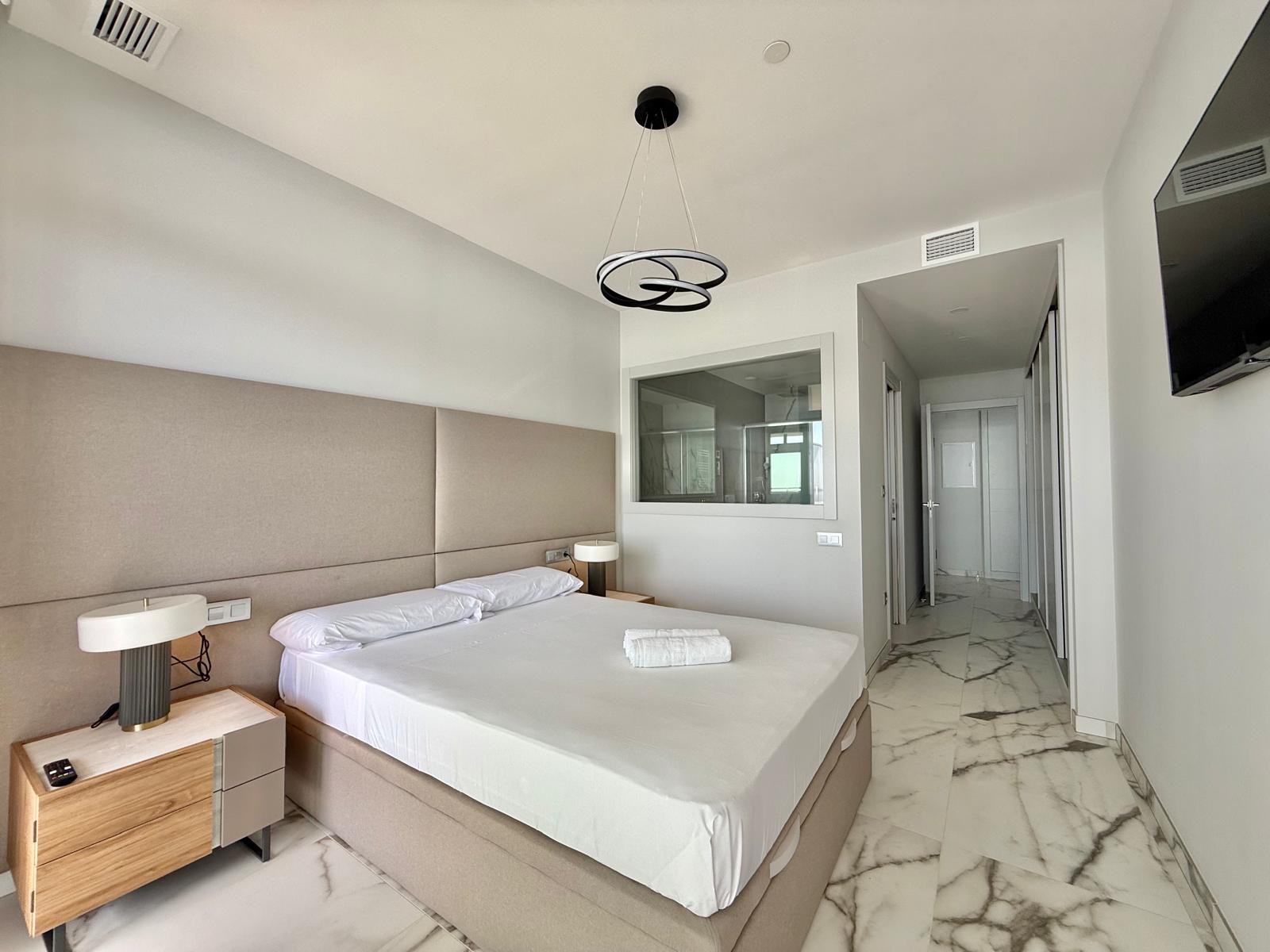 Dispone de ascensor, 25 m² de terraza, lavadora, plancha, acceso internet (wifi), secador, pista de tenis, gimnasio, calefacción bomba de calor, aire acondicionado en todo el alojamiento, piscina comunitaria+infantil, piscina climatizada comunitaria, parking aire libre en mismo edificio, 2 Televisores.