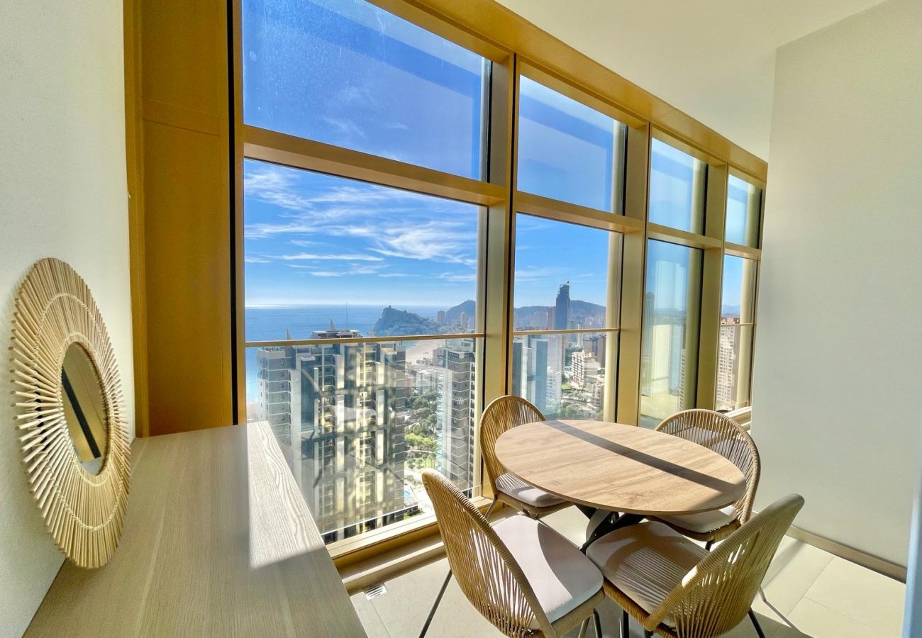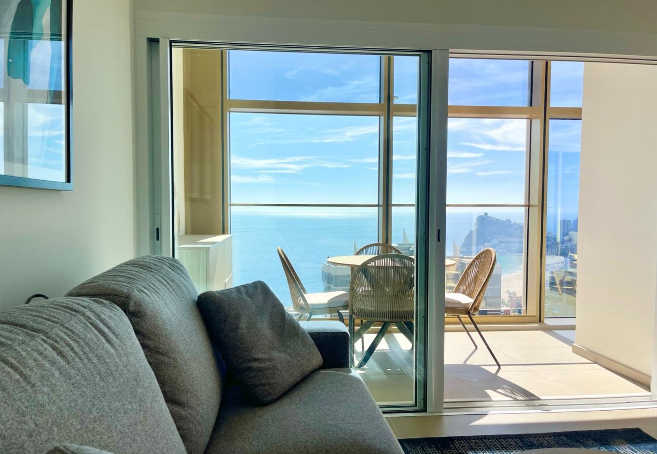The apartment in Benidorm has 2 bedroom(s) and capacity for 5 people. Accommodation of 85 m² furnished with taste and very bright, with sea views. It is located 0 m from the rocky beach, 2 m from the city "Old Town Benidorm", 100 m from the restaurant, 700 m from the sandy beach "Poniente Beach", 1 km from the supermarket "Commercial Area La Marina", 3 km from the Golf course "VILLAITANA", 3 km from the bus station "Benidorm", 3 km from the theme park "Terra Mítica", 5 km from the water park "Aqualand", 65 km from the airport "Alicante", 65 km from the train station "Alicante" and is located in an ideal area for families and next to the sea. It has a lift, washing machine, iron, internet access (wifi), heat pump heating, air conditioning throughout the accommodation, communal swimming pool, heated communal swimming pool, covered parking in the same building, 1 Television. The American kitchen, with vitroceramic hob, is equipped with fridge, microwave, freezer, crockery/cutlery, utensils/kitchen, coffee maker, toaster and kettle.