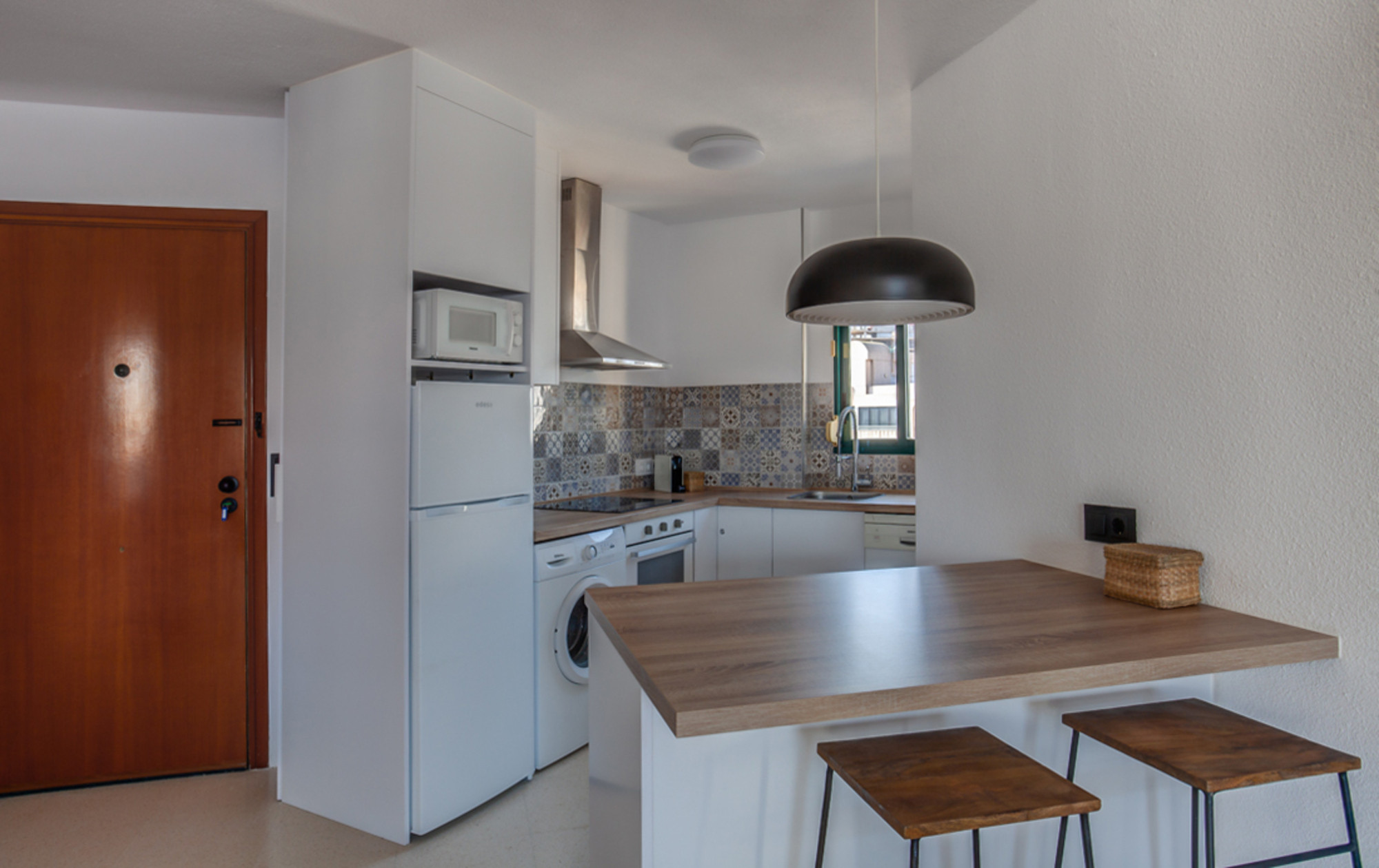 In the hotplate of glass ceramics independent kitchen, refrigerator, microwave, oven, freezer, dishes/cutlery, kitchen utensils, coffee machine, toaster and kettle are provided.