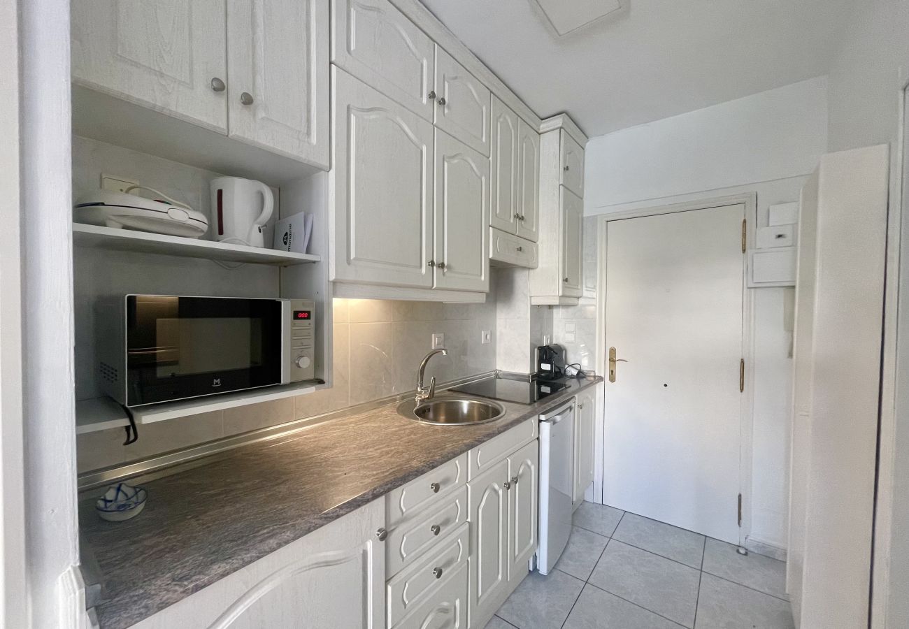 La cuisine américaine, électrique, est équipée d'un réfrigérateur, d'un lave-linge, de vaisselle/couverts, d'ustensiles/cuisine, d'une cafetière et d'un bouilloire.